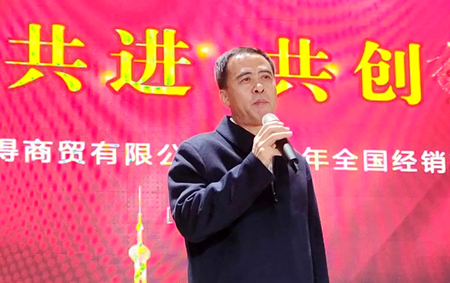甘肃省酒业协会副会长、国台•敦煌印象全国运营商、敦煌印象商标持有人、甘肃亿得商贸有限公司董事长王洪清致欢迎辞。他说,经历了2023年的严峻形势,在各位经销商伙伴和亿得公司全体员工的共同努力下,逆水行舟,迎难而上,圆满完成了2023年度国台酒销售任务。