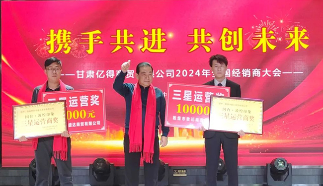 经销商代表、甘肃义顺集团副董事长张秉华致辞时说,义顺集团是2022年与甘肃亿得商贸有限公司签约国台•敦煌印象酒的甘肃省级代理,主要是看好国台•敦煌印象的品质和品牌文化的底蕴;另一方面也是义顺集团公司重点布局,推广次高端产品线更加完善。过去的一年中,亿得商贸多次与义顺集团沟通、交流,王洪清董事长不辞辛苦,亲赴杭州市场、宁波市场考察,协助运营市场,无论市场维护还是售后服务都令人非常感动。2024年,义顺集团加大对各分公司国台•敦煌印象的考核指标,提升产品序列更高的位置,打造文创品牌一面旗帜,凸显更高的品牌价值,携手共进,共创共享共赢,力争把国台•敦煌印象打造成一款具有甘肃白酒代表性的文创品牌。