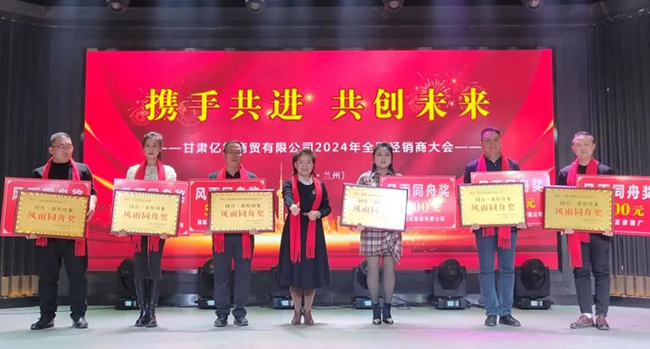 新年伊始,万象更新。1月19日,以“携手共进共创未来”为主题的“甘肃亿得商贸有限公司2024年全国经销商大会”在兰州隆重举行。甘肃省工商联党组成员、副主席毛赟,甘肃省酒类流通产业促进中心主任段治国,甘肃省经济合作中心原二级巡视员、《陇酒文史》编辑部负责人陈浦,甘肃省酒业协会常务副会长党金林、副会长兼秘书长李云,兰州市诗词协会会长、大西北传媒董事长杨重琦、总经理杨晓东,甘肃酒业协会副会长、甘肃亿得商贸有限公司董事长王洪清及公司全体员工、省内国台•敦煌印象经销商近100多人出席大会,大家欢聚一堂,共同分享收获的喜悦与荣耀,摹画2024新蓝图,展望新程谱新篇。