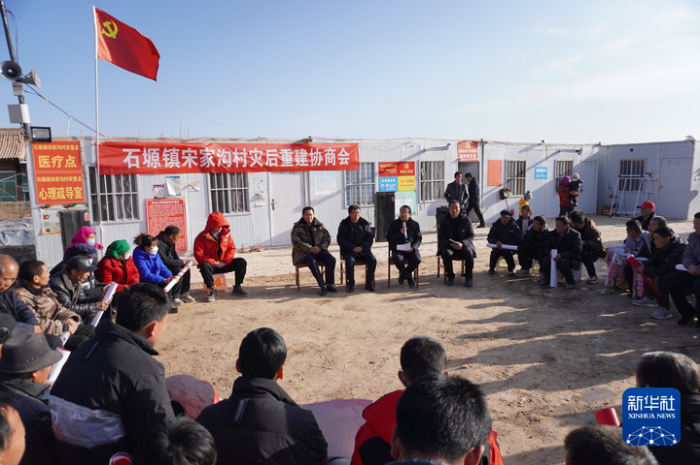 这是1月17日拍摄的甘肃省临夏州积石山县石塬镇宋家沟村灾后重建协商会现场。新华社记者 马希平 摄