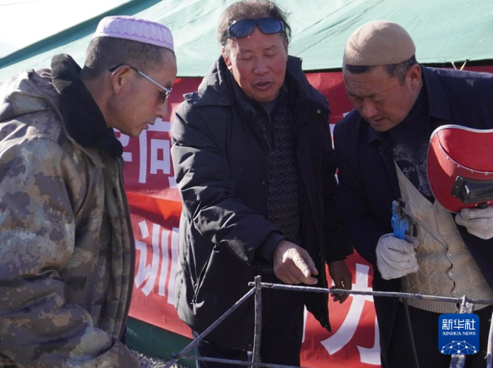 1月16日,在甘肃省临夏州积石山县大河家镇陈家村安置点,群众参加电焊技能培训班。新华社记者 马希平 摄