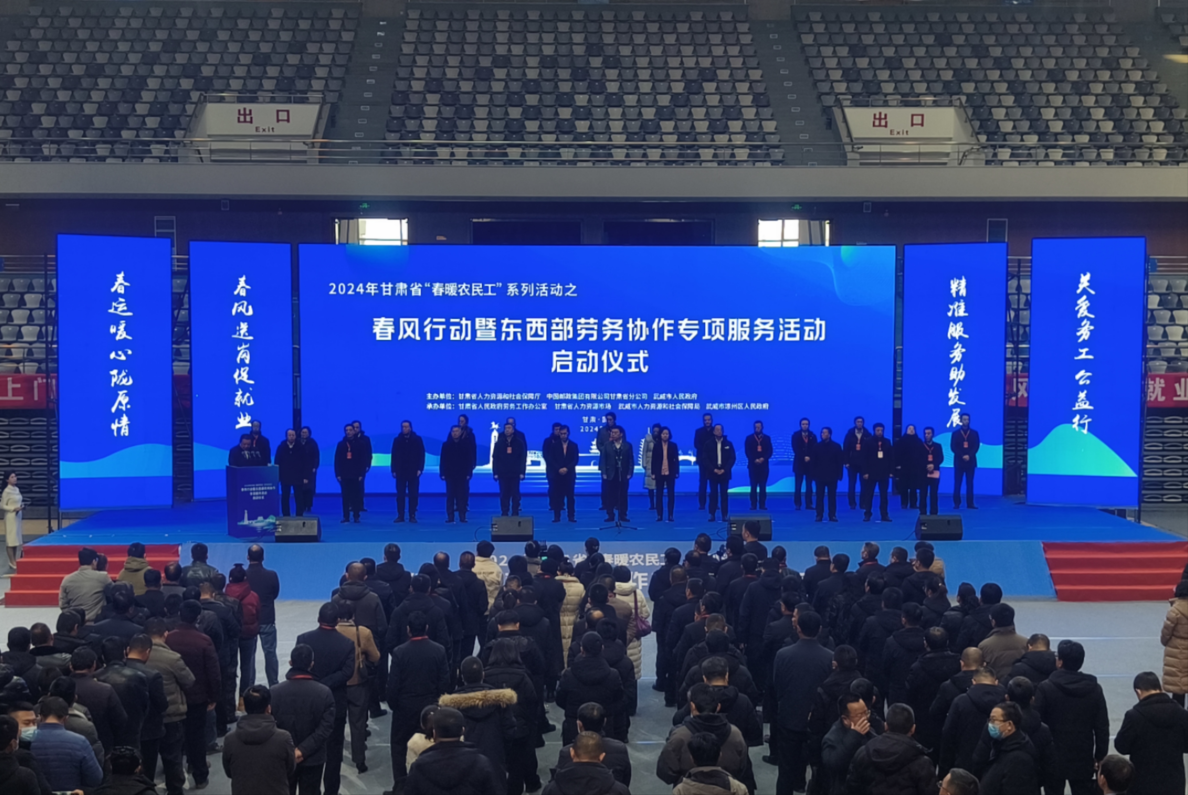大西北网武威讯(记者张国伟)1月30日,甘肃省人力资源和社会保障厅、中国邮政集团有限公司甘肃省分公司、武威市人民政府联合在武威市启动2024年甘肃省“春暖农民工”系列活动之春风行动暨东西部劳务协作专项服务活动。武威市副市长柳生坠致辞,甘肃省人社厅党组成员、副厅长何永强出席讲话并宣布活动启动。