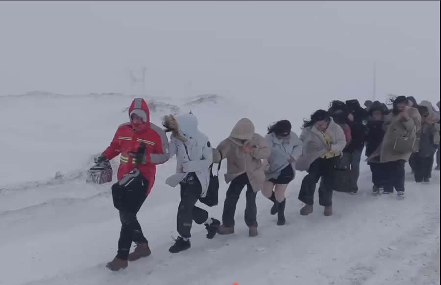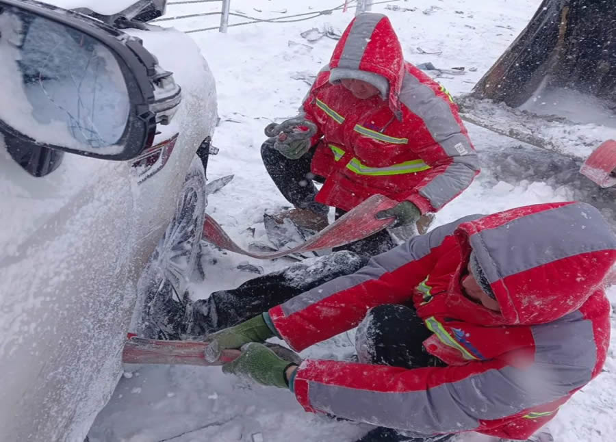 在G335承塔高速老风口段,老风口管理部和庙尔沟管理部协调机械设备全部上路,采取先救人后救车的办法,一面将作业重点转为保障道路畅通,救助受困群众并安全转移至管理部,一面撒布防滑砂。考虑到被困群众行程紧张,管理部又协调车辆安排好后续转乘事宜,共疏导车辆2000余台,救援车辆43台、被困群众89人。