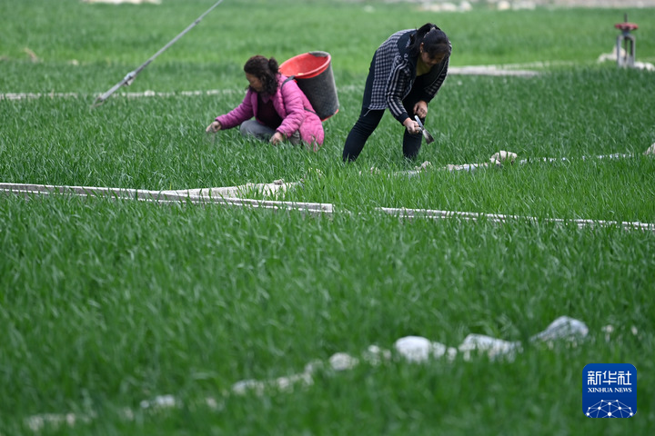 3月9日,在陇南市武都区石门镇草坝子村,村民在麦田里劳作。新华社记者 陈斌 摄