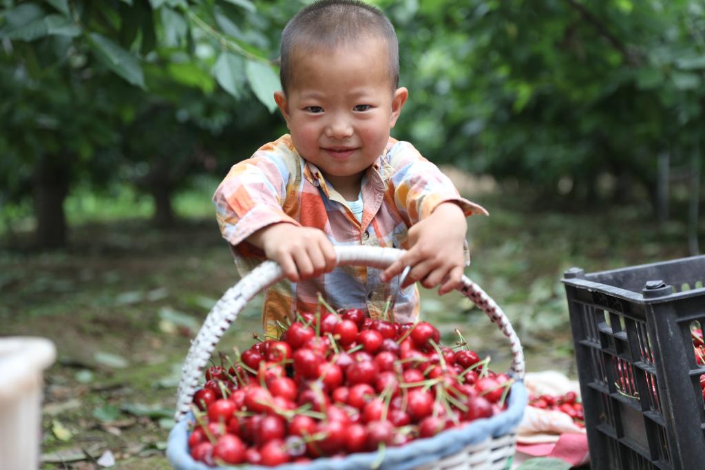 2020年6月20日,在天水市秦州区藉口镇的一处果园里,孩子在玩耍。新华社记者 多蕾 摄