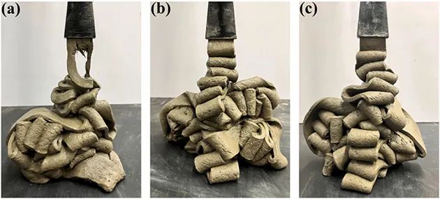 图2. 添加1%纤维和不同质量纳米凹凸棒石(a-0%、b-0.25%、c-0.5%)时3D打印性能
