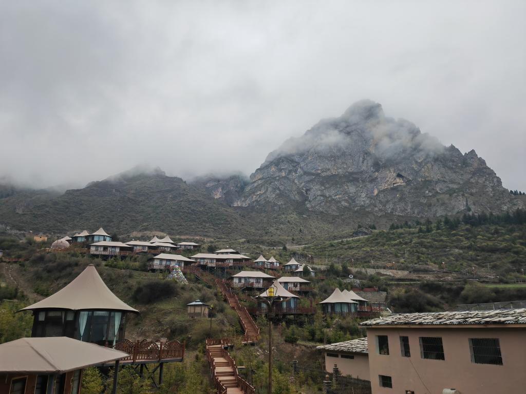 从道杰东主的民宿继续往上走,有一间“云境野舍帐篷酒店”,一栋栋如同帐篷般的独立房间依山而建。