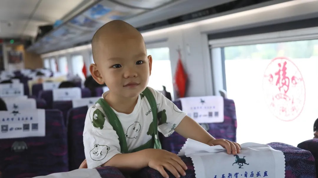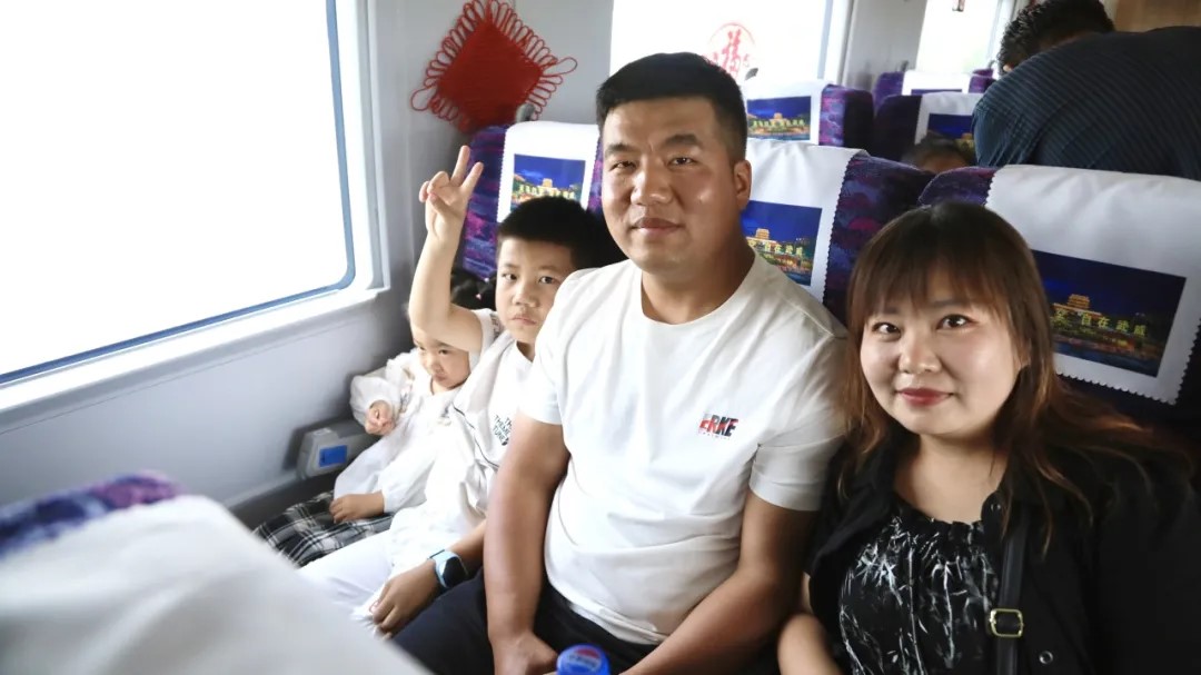 首发列车车厢两侧悬挂着象征团结、幸福、平安的红色中国结,车窗则张贴上了独具民俗民趣的窗花贴纸,营造出喜悦欢乐的氛围。