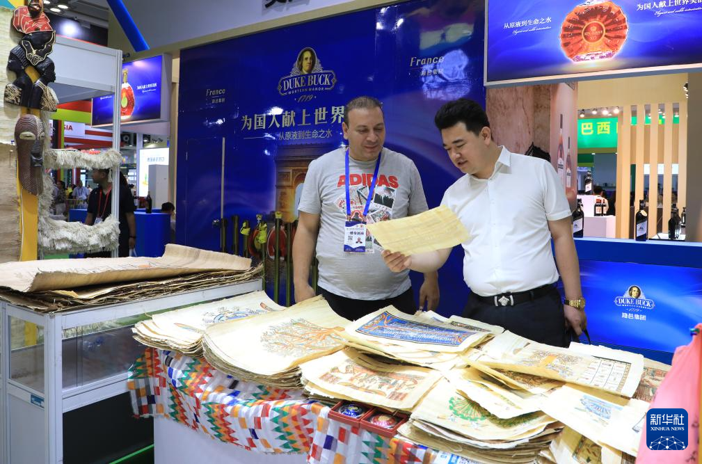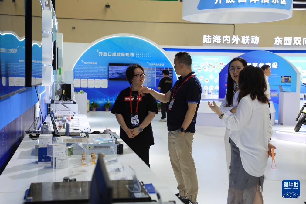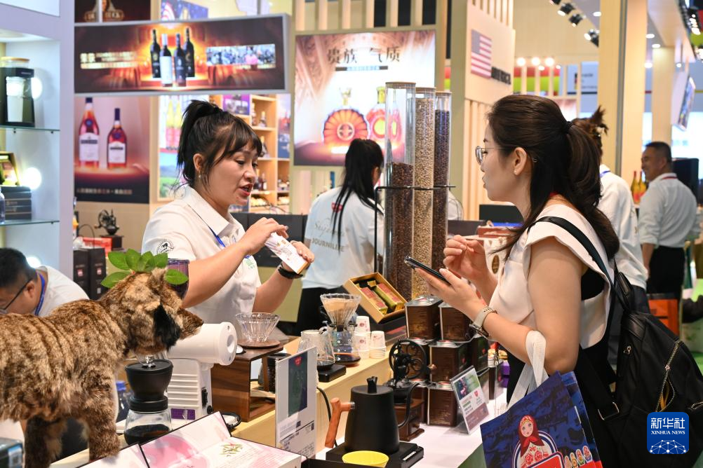 7月6日,在第三十届兰洽会印度尼西亚展台,参展商向顾客介绍印度尼西亚商品。新华社记者徐皓夫摄