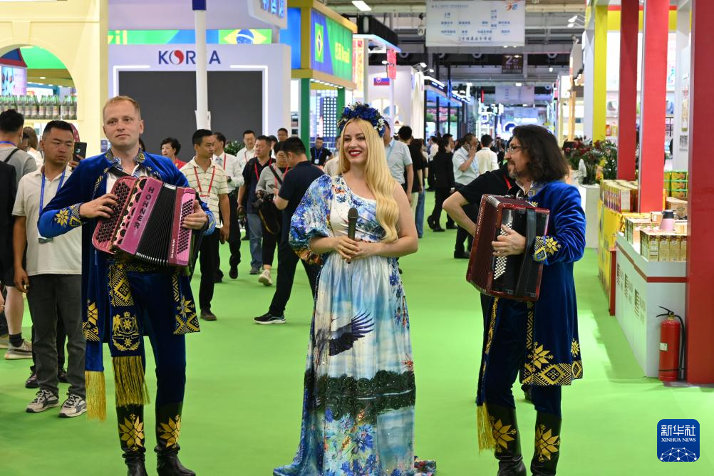 7月6日,在第三十届兰洽会主展馆,白俄罗斯乐队在白俄罗斯馆开馆仪式上演奏。新华社记者徐皓夫摄