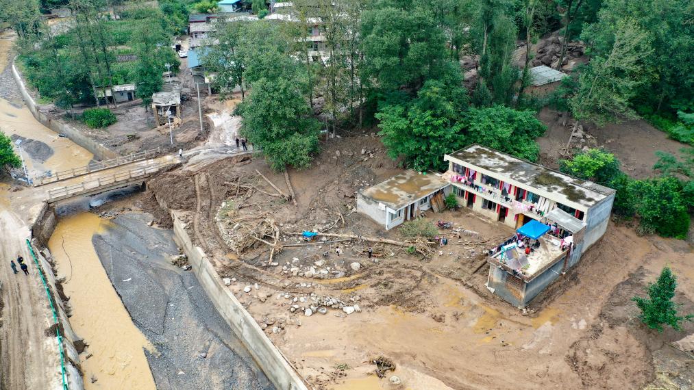 这是7月29日在陇南市武都区黄坪镇黄坪村拍摄的泥石流灾后景象(无人机照片)。新华社记者郎兵兵 摄