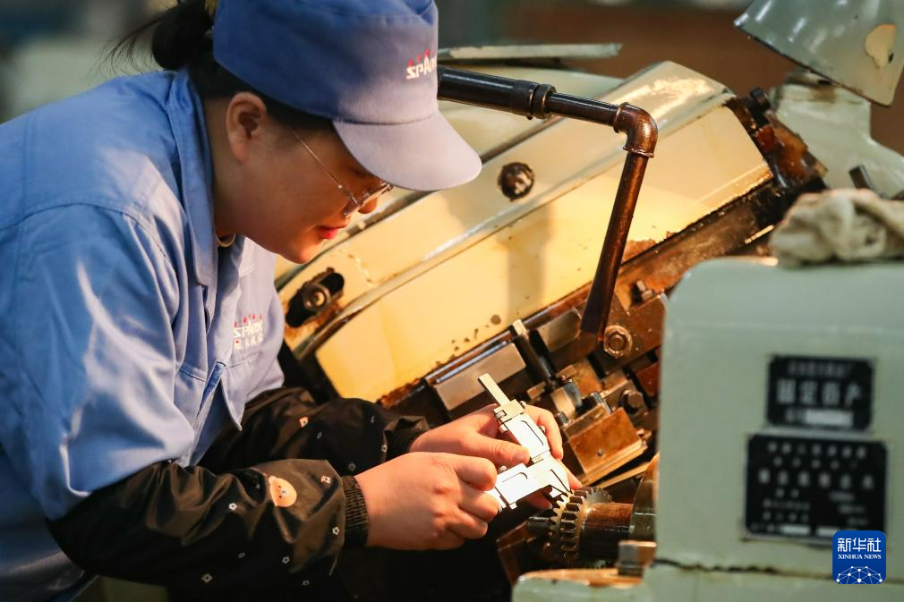 10月25日,工人在甘肃星火智能数控机床有限公司老厂区内的齿轮车间用卡尺测量工件尺寸。新华社记者 郎兵兵 摄