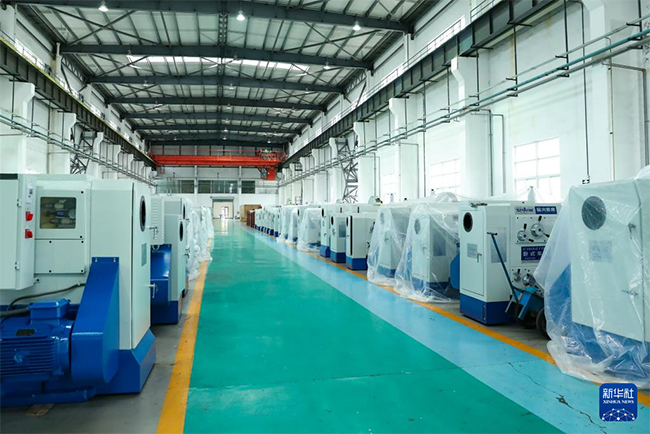 在甘肃星火智能数控机床有限公司新厂区,加工好的SPARK牌数控车床在等待发货(10月25日摄)。新华社记者 郎兵兵 摄