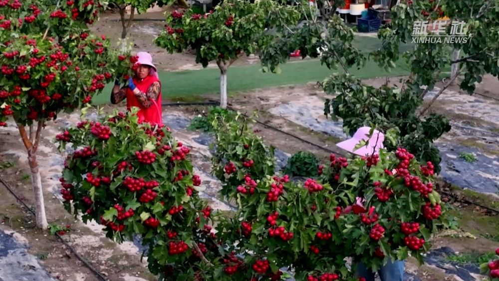 农民合作社社员穿梭于山楂树间,收获果实,收获喜悦。
