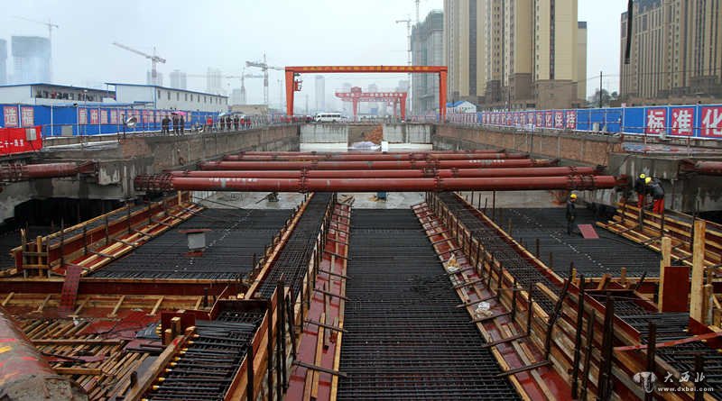 据悉,世纪大道车站为兰州市城市轨道交通I号线一期工程中间车站,位于银安路与规划世纪大道交口处。其全长305.15米,标准宽度为21.6米,总高13.74米,总建筑面积为17608.98平方米。采用地下两层双柱三跨的结构形式。在银安路南北两侧各设两个出入口,在北侧设置两组风亭。本工程车站主体结构由上至下设3道内支撑。自2012年9月9日第一根围护桩施工以来,项目部精心组织,优化施工方案,连续组织开展“百日大干”、“劳动竞赛”等活动,加快施工生产,截止9月18目封顶,该站共完成桩间喷锚12000平方米,土方开挖12万方,混凝土浇筑30000立方米等。