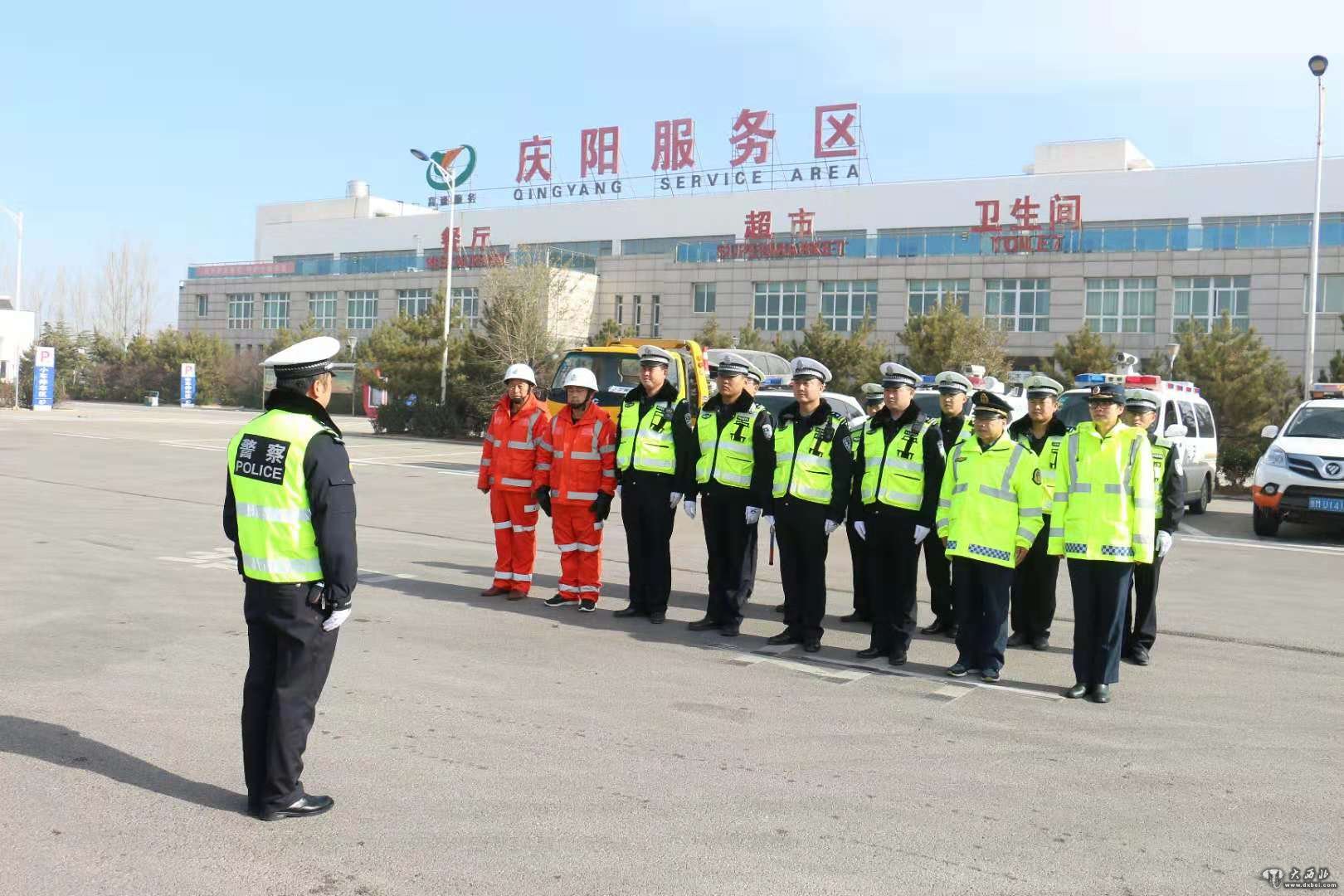 大西北网讯( 记者王小强通讯员刘杰) 11月19日10时30分,庆阳市公安局交警支队第一高速公路大队组织全体民警辅警及庆阳高速公路路政执法大队、高速公路清障救援大队工作人员在庆阳服务区开展了道路交通事故现场安全防护及处置实战演练。