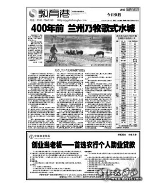 早在2010年底,鑫报刊发“兰州应充分用好黄河水资源”系列报道:《兰州:别把黄河“押解”出境》、《400年前兰州乃牧歌式水城》、《开发得当:兰州可增3万亩水域》、《借水生财:大河激荡水经济》、《上善若水:天下黄河绿兰州》等,呼吁“兰州应充分用好黄河水资源”,实现“天下黄河绿兰州”。