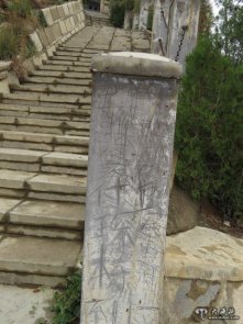 兰州国学馆踏步护栏和两边树木上的涂鸦1