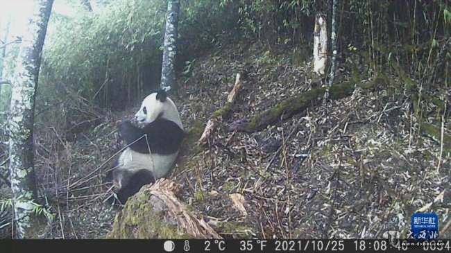 这是大熊猫国家公园阿坝管理分局茂县管理总站在土地岭大熊猫生命走廊带安装的红外相机拍摄到的野生大熊猫影像(10月25日摄)。