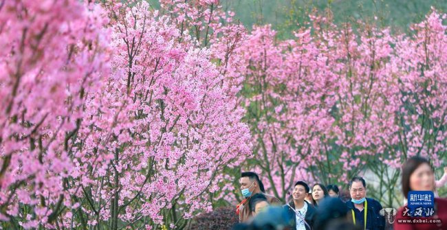3月6日,游人在四川省泸州市江阳区丹林镇建设村“樱花谷”欣赏盛开的樱花。