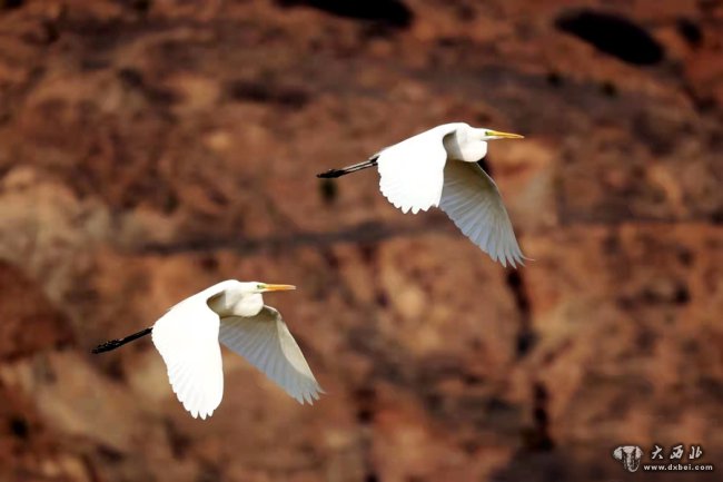 白鹭翱翔漳河边