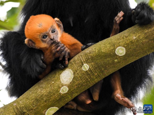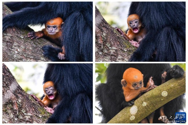 贵州麻阳河国家级自然保护区管理局观测发现,近日,保护区新出生两只黑叶猴宝宝,毛色呈金黄色,几个月后黑叶猴宝宝毛发将逐渐变成黑色。