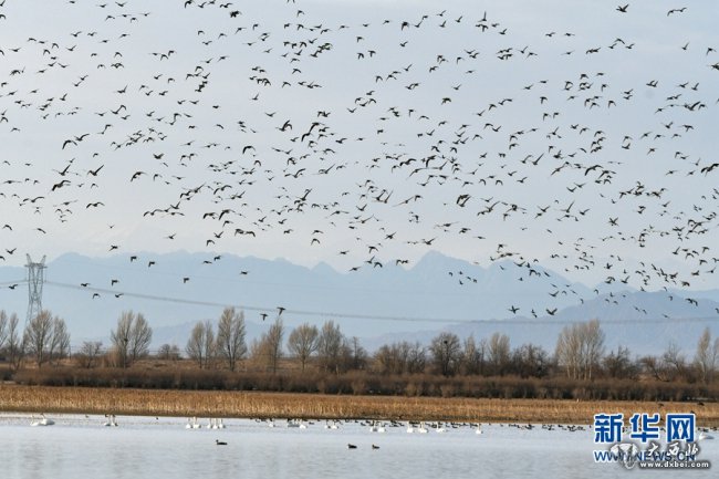这是3月20日在甘肃省张掖黑河湿地国家级自然保护区内的临泽县鲍家湖湿地拍摄的候鸟。新华网发(郑耀德摄)
