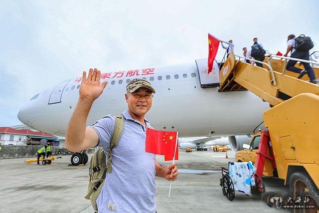 “看到你们的飞机到了,我就放心了!”中华人民共和国驻安提瓜和巴布达特命全权大使王宪民率领使馆人员快步走到停机坪欢迎包机的到来。