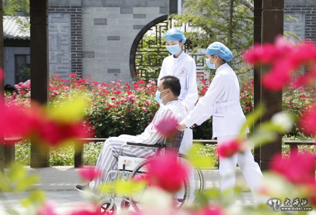 5月11日,河北省邢台市南和区人民医院护士在院区陪伴患者,将关怀融入日常护理。新华社发(张驰 摄)