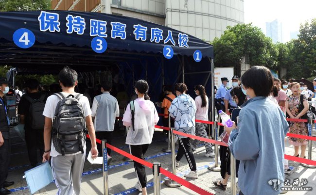 在安徽省合肥市五十中学天鹅湖校区考点,考生们有序进入考场。新华社记者 周牧 摄
