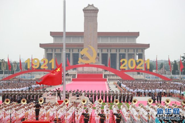 7月1日上午,庆祝中国共产党成立100周年大会在北京天安门广场隆重举行。这是升国旗仪式。