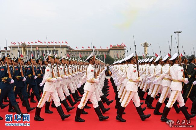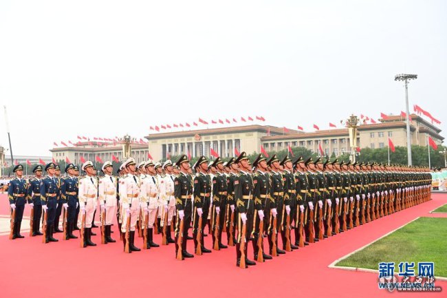 7月1日上午,庆祝中国共产党成立100周年大会在北京天安门广场隆重举行。这是国旗护卫队准备升旗。