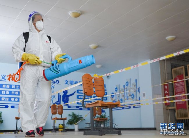 7月24日,在南京市江宁区龙西社区核酸检测点,消杀员黄凤蓉在对核酸检测点进行消杀。新华社记者 李博 摄