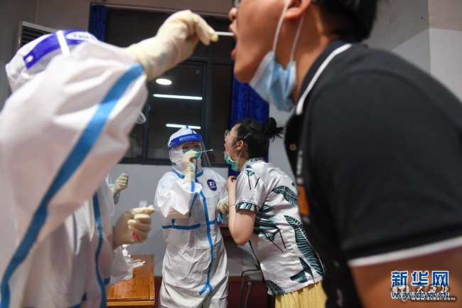 7月24日,医护人员在南京市江宁区龙西社区核酸检测点为社区居民进行核酸检测取样。新华社记者 李博 摄