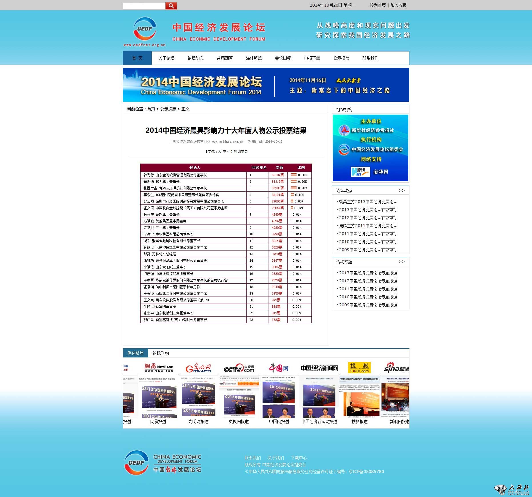 作为每届论坛的“重头戏”,“中国经济最具影响力十大年度”评选得到了社会各界的普遍关注,入围2014十大年度人物评选的22位优秀企业家,涵盖了金融、家电、生物科技、建筑、房产、食品、影视、保险等国家和区域支柱行业,他(她)们身上兼备的“四力”(创新力、影响力、推动力、公信力),集中体现了经济转型期对企业家素养更高、更新、更全面的要求。