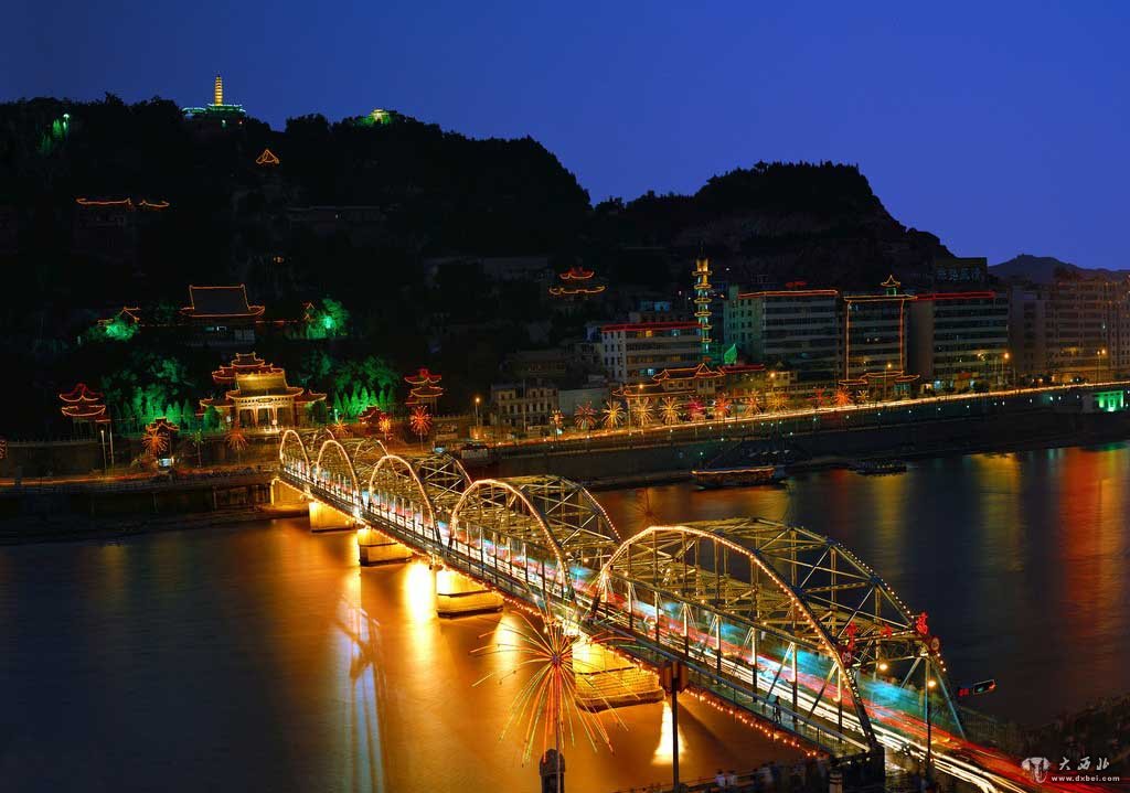 夜幕降临,华灯齐放,被彩灯装饰的中山桥,像一道色彩斑斓的飞虹,横卧河上,“火树银花合,星桥铁索开”,更使人加深了对“长虹卧波,未雨何虹”的理解。桥头上,霓虹灯不停地闪烁着,变幻着色彩,在夜空中十分耀眼。花坛绿带中,地面射灯、草坪灯把。鲜花绿树照耀得更加鲜艳诱人。明亮的路灯、别致的华灯、中山桥上的轮廓灯,倒映在河中,把黄河水染的五彩缤纷,这五彩的光,在水波中轻轻地摇曳,给人以无限的美感。中山桥,这座黄河上最古老的,也是唯一留存的一座近代桥梁,似乎年轻了许多。络绎不绝的中外游人,在赞叹之余,疑惑地发问:“这就是中山桥吗?是兰州的中山桥吗?”是的,这就是中山桥,是兰州的中山桥。当书本上、报刊上、电视屏幕上出现中山桥-白塔山的画面时,人们会不约而同地说:“这是兰州,兰州的中山桥。”中山桥、兰州这两个名字已经融为一体了。中山桥,已经成为了兰州的标志。据《百年中山桥》
