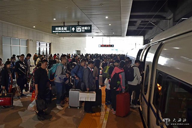 10月1日,旅客在沈阳北站排队上车。沈阳铁路局各大车站假期首日预计发送旅客115万人次。当日是国庆、中秋假期的第一天,全国多地迎来出行高峰。 新华社发(龙雷 摄)