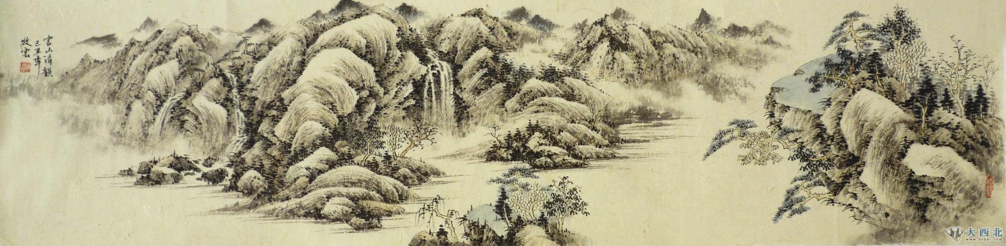 永民兄性情温厚,为人谦和,在朋友圈中是一位宽和文雅的良友,在生活中口碑甚佳;但在艺术创作上,他对自己却是苛刻得近乎挑剔。他是南方人,自小西北长大,身上很自然地兼有西北人的豪迈和南方人的灵秀。这一特点也见于他的水墨语言中。永民兄自幼喜欢绘画,尤其对千年不衰的中国山水画用情甚深。他从小就喜欢临摹《芥子园画传》中的山水。二十年前,永民兄来陇南成县工作,在风景如画的王磨乡,他的艺术心胸进一步受到了自然之景的熏陶和启迪;高峻的牛星山、清澈的黑鹰河都曾屡次给了他澎湃的艺术激情和深刻感悟,使他的山水画由师法古人走向了师法造化。在多年亲近自然 民兄对中国山水画传统笔意和大自然的丰富面貌做了契合,逐渐形成了自己的艺术特色。