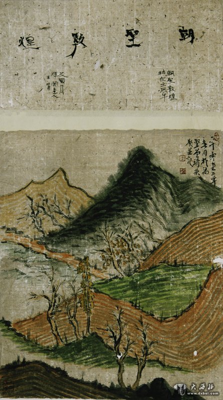 近岁,其溯追敦煌本元,寒暑易节,潜心斧凿,日积月累,成洋洋乎数十余帧,是曰敦煌画派,致同道刮目,为之神驰。