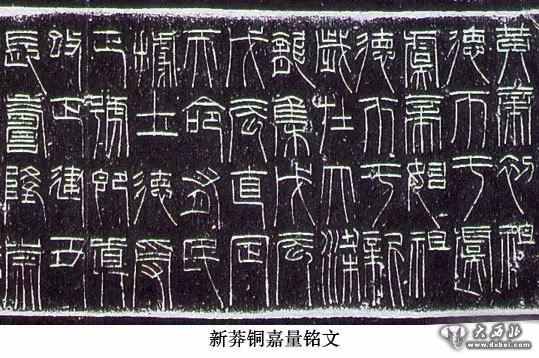 新莽时期有些例外。王莽复古,试图恢复小篆,因而其间出现了不少制作精美、书写严谨的铜器铭文作品,如《新莽铜量》、《新莽铜衡杆》、《始建国铜方斗》、《始建国铜撮》和《始建国尺》等。布局整齐规范,结构方严刻厉,笔画瘦劲挺拔,《新莽铜量》尤其具有代表性。