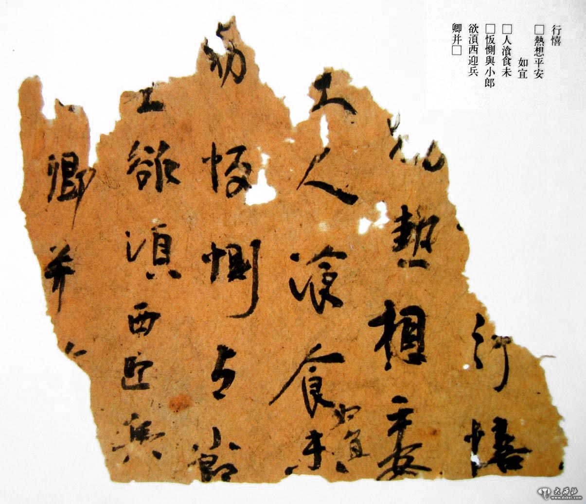 综上所述,从陶文、甲骨文、金石文、篆文到五体书法的形成,历经了漫长的岁月。解析它们之间的逻辑关系和变异过程,对书法研究至关重要。楼兰残纸就处于这个变异过程的关键点上,对上它是由古文字向今文字异化的终结者,对下它是晋唐书法盛世的启蒙者和开拓者。如果把中国书法的演变比作链条,楼兰残纸是这个链条上承上启下的一环。从陶文到篆文再到五体书法,这是中国书法的原生态时期,楼兰残纸就是这一原生态时期的标本。