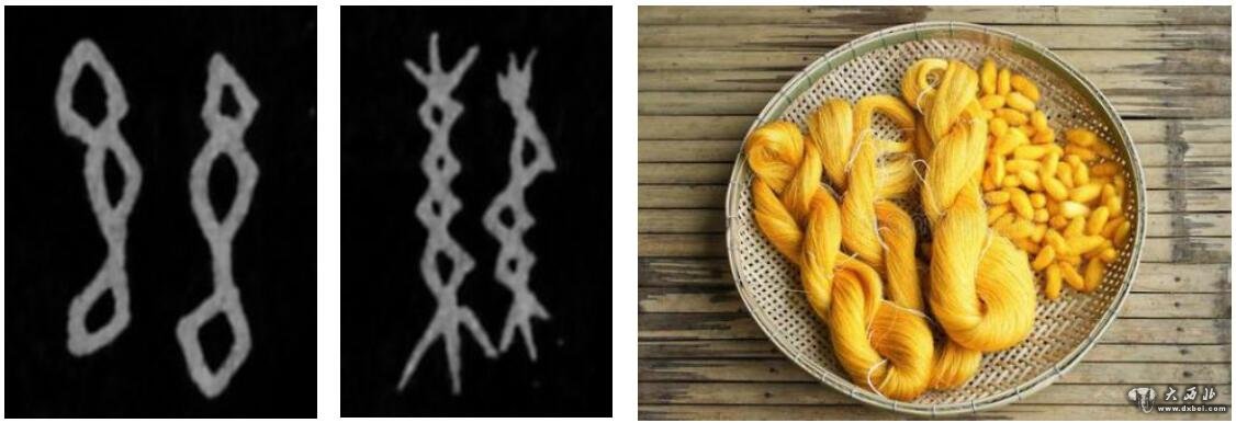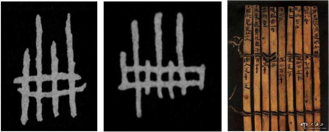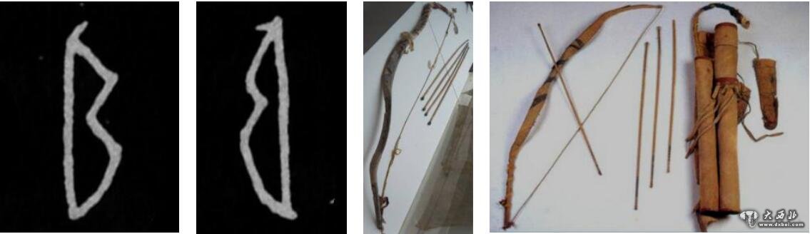 上一期讲到象形文字中对动物形象的描摹。本期我们接着讲第三类象形文字描摹物象的情况,那就是模拟日常生活中的用具和产品。比如“壶”在甲骨文中有多种写法,但都遵循了圆腹加盖器皿的基本形象,有些甚至连壶身上的纹饰都描画了出来。如果结合考古发掘的原始彩陶来看,就不难发现先民们日用器物造型的多样性与对应字形的多样性是有着内在联系的(图1-1、1-2)。再如“弓”字在甲骨文中被写成弯拱带弦的弓的样子(图2-1、2-2),“丝”字又活像两束打了结的蚕丝线(图3-1、3-2)。如果说“壶”“弓”“丝”是先民们为了满足日常生活中吃穿生产了所需物品用具,并描摹其形状而得的文字的话,“册”字则是我国先民们创造精神文化留下的痕迹。因为,“册”字在甲骨文中的字形像是用两根绳子编穿起来的一长一短的竹简,而竹简上书写的正是传承中华文明的汉字(图4-1、4-2)。