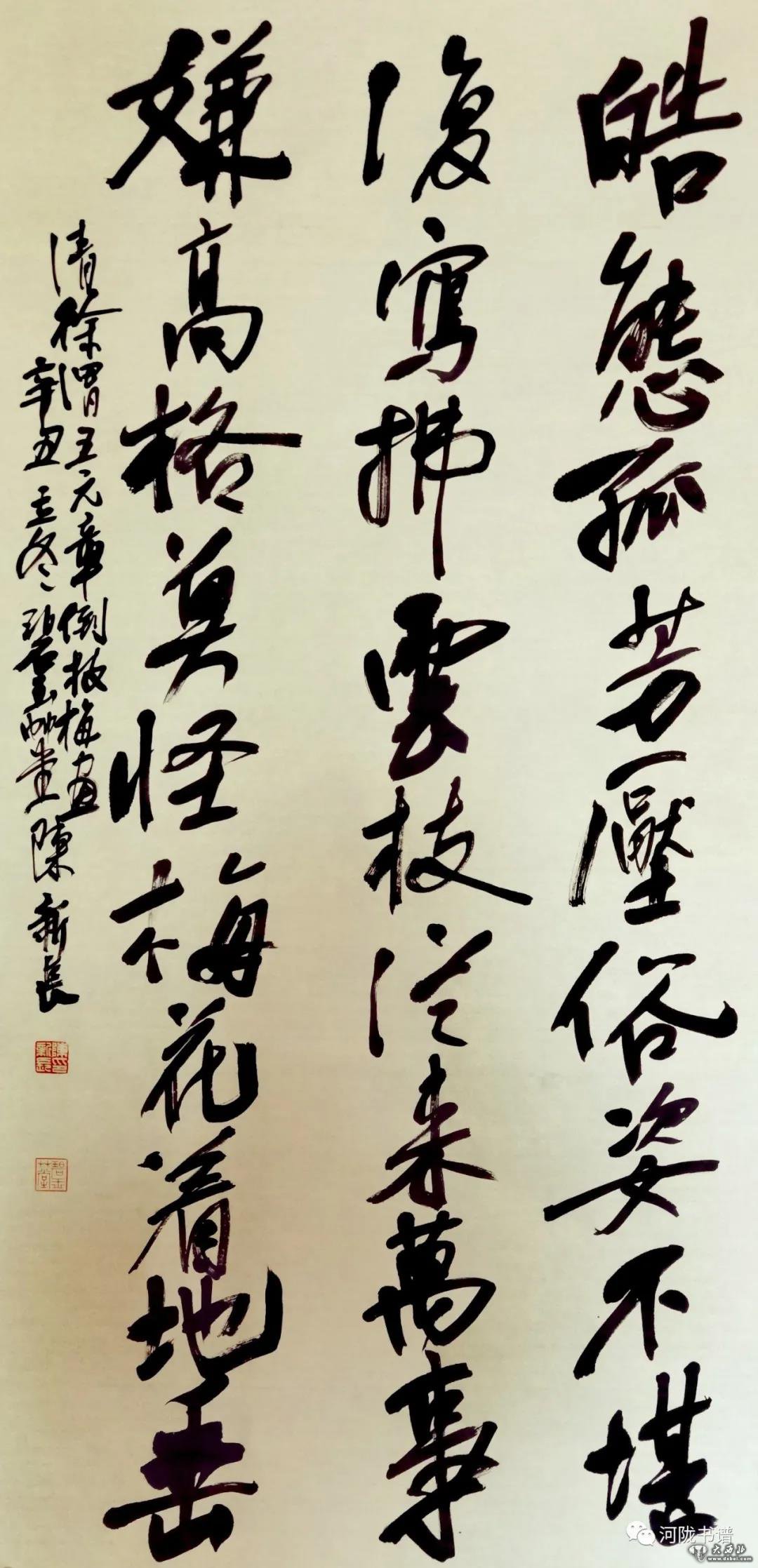 陈新长,1972年10月出生于通渭,曾任中共嘉峪关市委、嘉峪关市人民政府政策研究室副主任、中共嘉峪关市委宣传部常务副部长、嘉峪关丝路(长城)文化研究院党组书记、院长,第五届、第六届嘉峪关市书法家协会主席。现为中国书法家协会理事、甘肃省书法家协会常务副主席、甘肃省丝绸之路研究会副会长、西北师范大学书法文化研究院兼职教授。