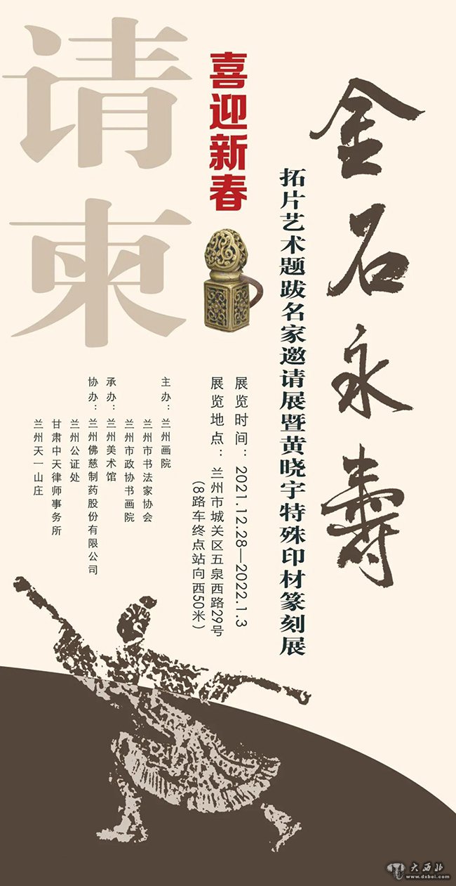 【展览邀请】喜迎新春--“金石永寿”拓片艺术题跋名家邀请展暨黄晓宇特殊印材篆刻展12月28日上午10时在兰州美术馆开展
