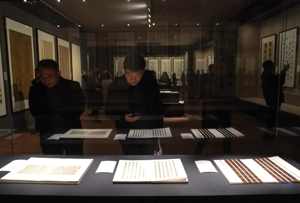 12月2日,观众观看“简述中国——2023全国简牍书法大展”上的简牍书法作品。新华社记者 马希平 摄