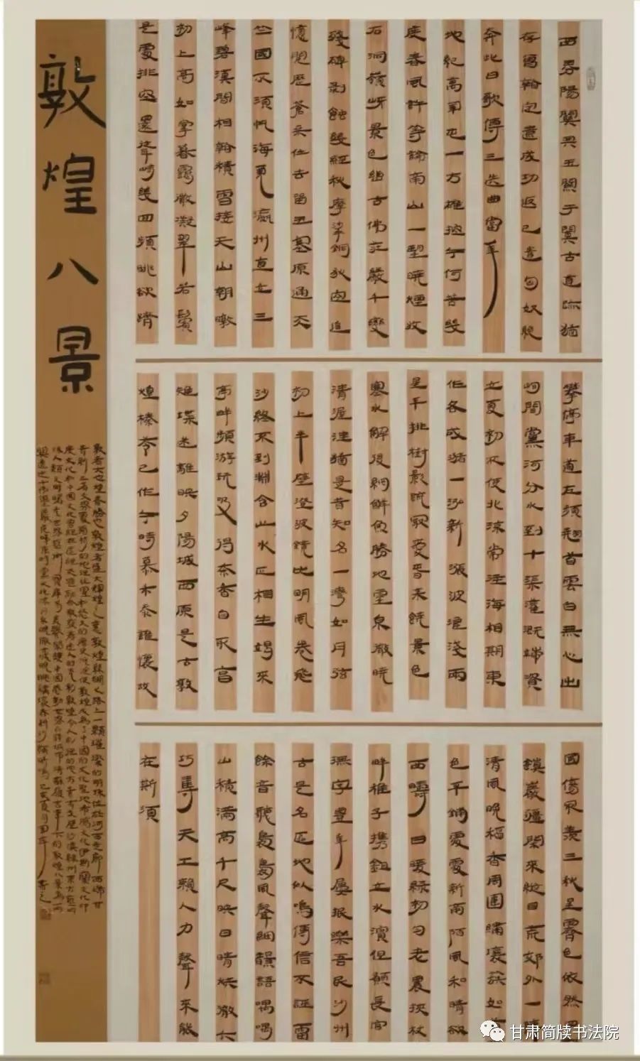 简牍文化底蕴深厚,书法艺术源远流长,简牍书法创造了中国书法发展史上书体演变和形成的辉煌篇章。甘肃简牍书法院既要很好地弘扬优秀的书法资源,又要更好的继承、创新、谱写新时代简牍书法新辉煌。