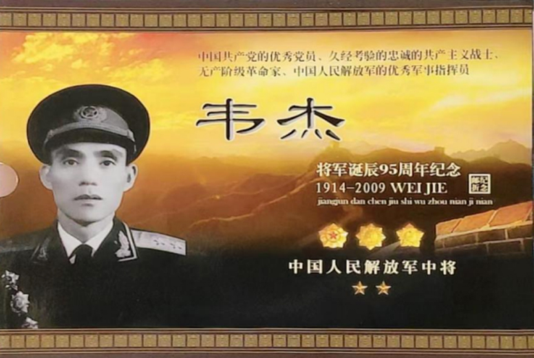 2010年1月13日,娜莎给我寄来由中国集邮总公司发行;中国共产党的优秀党员、久经考验的忠诚的共产主义战士、无产阶级革命家、中国人民解放军的优秀军事指挥员一一韦杰将军诞辰95周年邮折纪念和《韦杰中将》回忆录。我认真拜读学习,韦杰的战斗一生充满了智慧,他传奇一生注定在战场上,走过血与火的洗礼,他用自己的实际行动诠释了革命军人的作为。